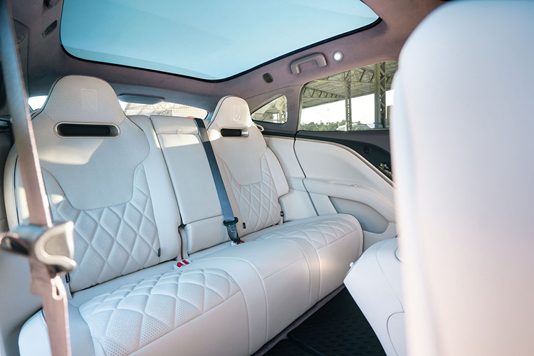 Su equipamiento es igualmente abundante e incluye climatizador bizona con salidas para las plazas traseras, sistema de purificación de aire, punto de acceso Wi-Fi, cargador inalámbrico, asientos delanteros eléctricos con 14 ajustes de posición, calefactables, enfriables y con función de masaje, espejo electrocromático, dos entradas USB tipo C y una tipo A, sistema de encendido inteligente sin botón, modos de conducción (Normal, Eco, Sport y Personalizado) además de un sistema de audio de alta fidelidad Meridian con 25 parlantes.
