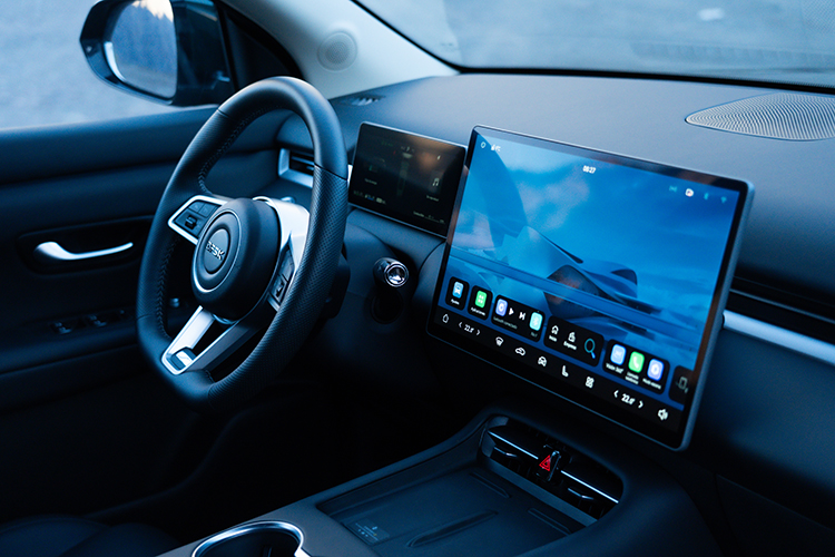 En el apartado tecnológico, el E5 Plus incorpora un completo ecosistema orientado a la conectividad y la experiencia a bordo. Destaca una gran pantalla multimedia táctil de 15,6”, acompañada de un panel de instrumentos digital, compatibilidad con CarPlay inalámbrico, cargador inalámbrico para dispositivos móviles y un sistema de audio envolvente con 13 parlantes. A esto se suma un sistema de purificación de aire que monitorea la calidad del ambiente al interior del vehículo.